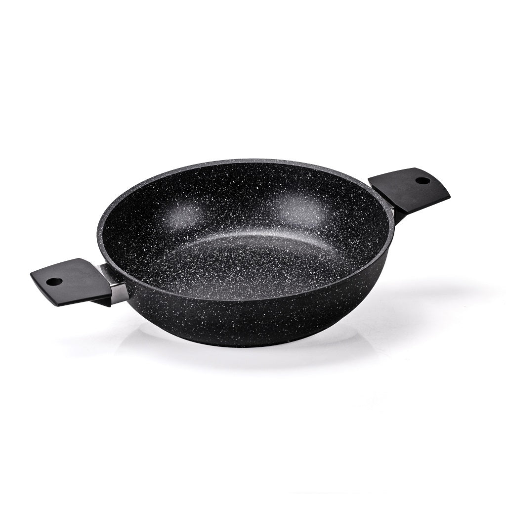 Rivestimento interno effetto pietra Artech antiaderente. Ottimo per cotture veloci, uniformi e senza grassi, molto resistente ai graffi e alle abrasioni, No PFOA, No Nichel, No BPA.