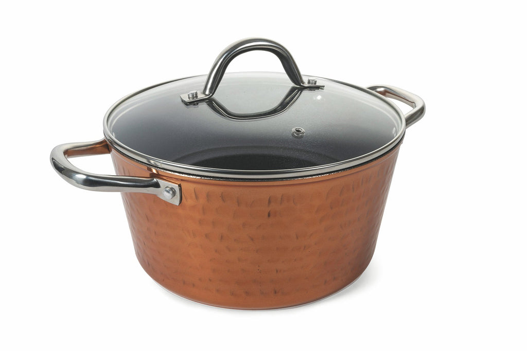 Batterie de Cuisine 9 Pièces en Aluminium Antiadhésif Induction VdE Tivoli 1996 Cuivre Martelé