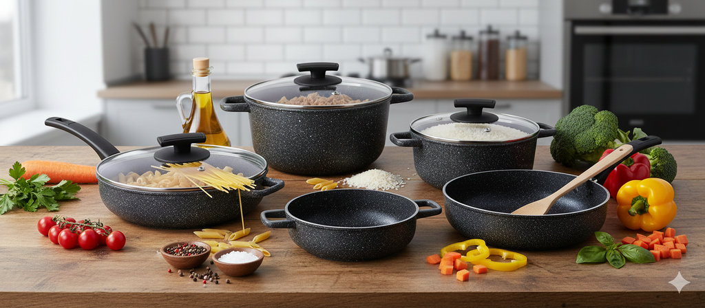 Batterie de cuisine antiadhésive 9 pièces en aluminium moulé sous pression Olympia Hard Cook