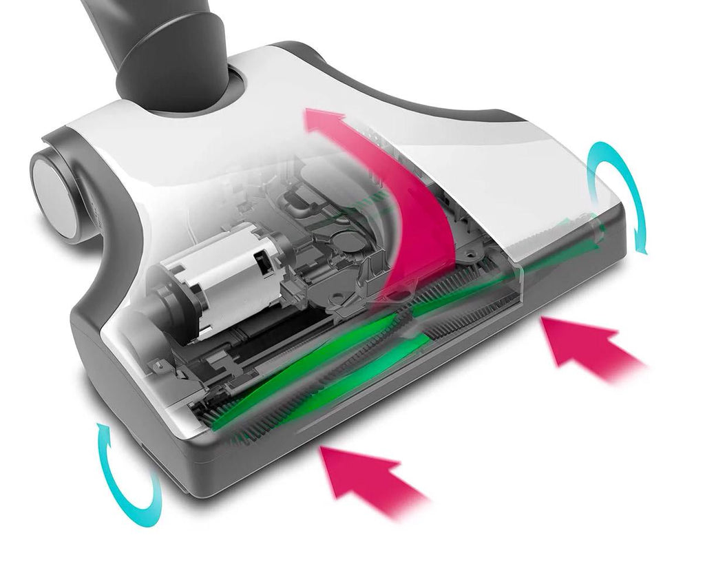 Pendant la phase d'aspiration, les brosses rotatives "peignent" le tapis : tandis que la saleté tenace est éliminée en douceur, les couches plus profondes sont soigneusement nettoyées. Avec Folletto EB420 S, votre maison sera vraiment propre.