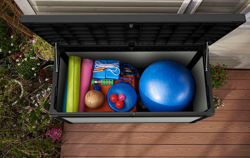 Coffre d'extérieur 122,9x62,1x54,5 cm en résine DUOTECH effet bois Keter Denali gris