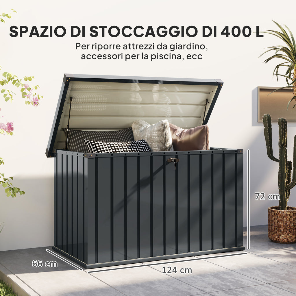 Baule Cassapanca da Esterno 124x66x72 cm da 400L in Acciaio Zincato con Serratura e 2 Chiavi Grigio Scuro
