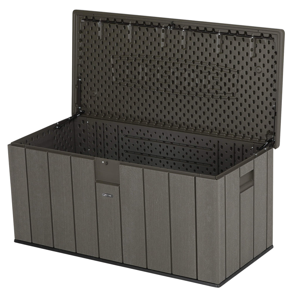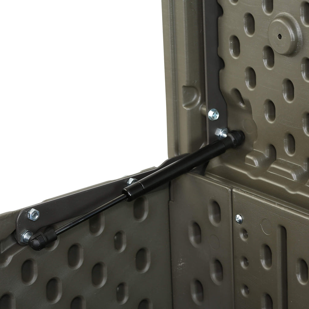 - La construction rigide en polyéthylène haute densité (PEHD) à double paroi rend le coffre robuste et durable