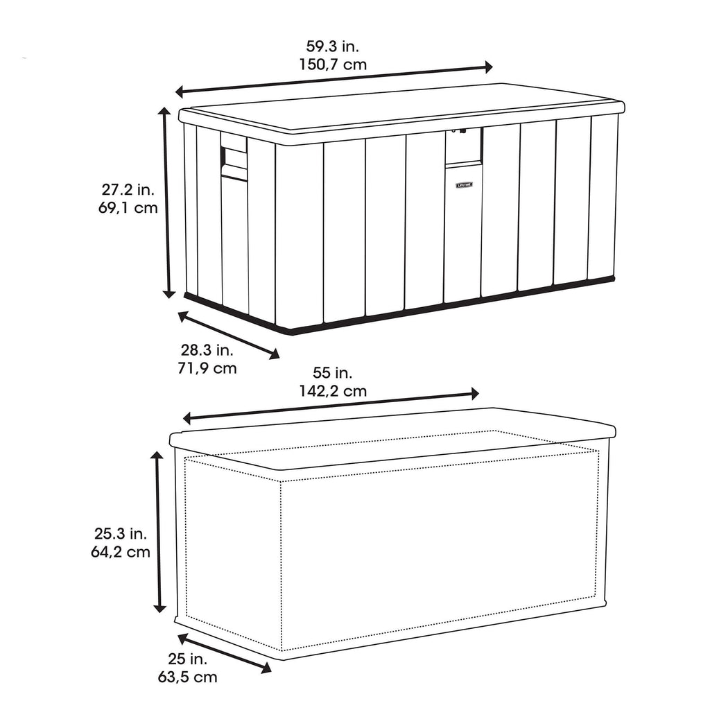 Malle coffre d'extérieur 151x72x69 cm en polyéthylène