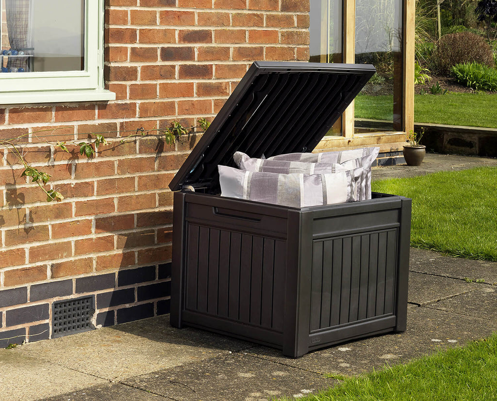 Coffre d'extérieur 72,2x59x71 cm en résine effet rotin Keter Cube bois marron