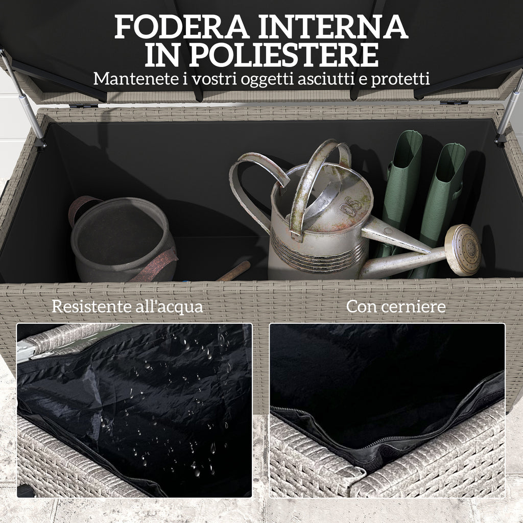Baule da Esterno 102x52x52 cm Capacità 184L Rivestimento Interno Impermeabile Effetto Rattan Grigio
