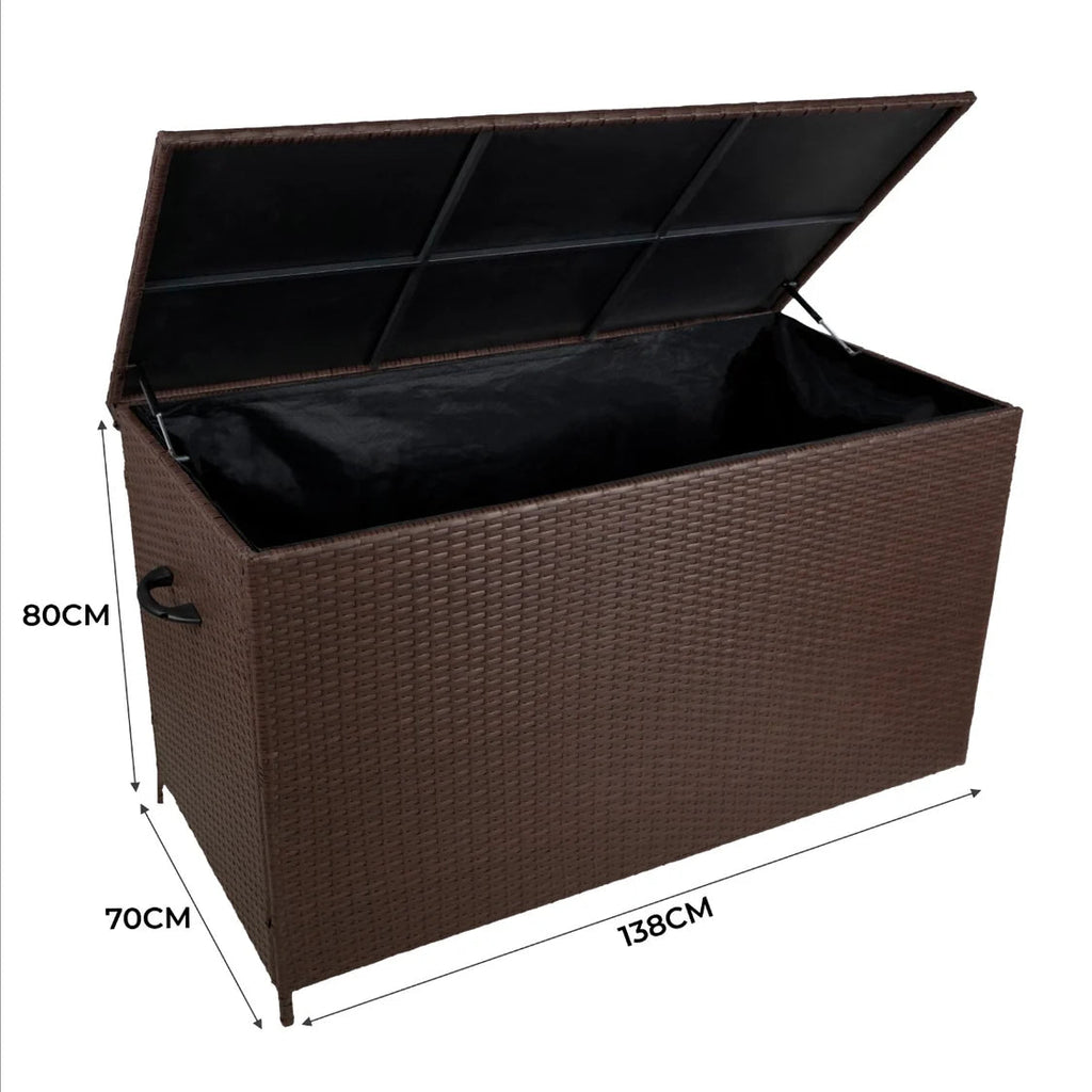 Baule da Esterno 138x70x80 cm in Rattan con Borsa Impermeabile Marrone