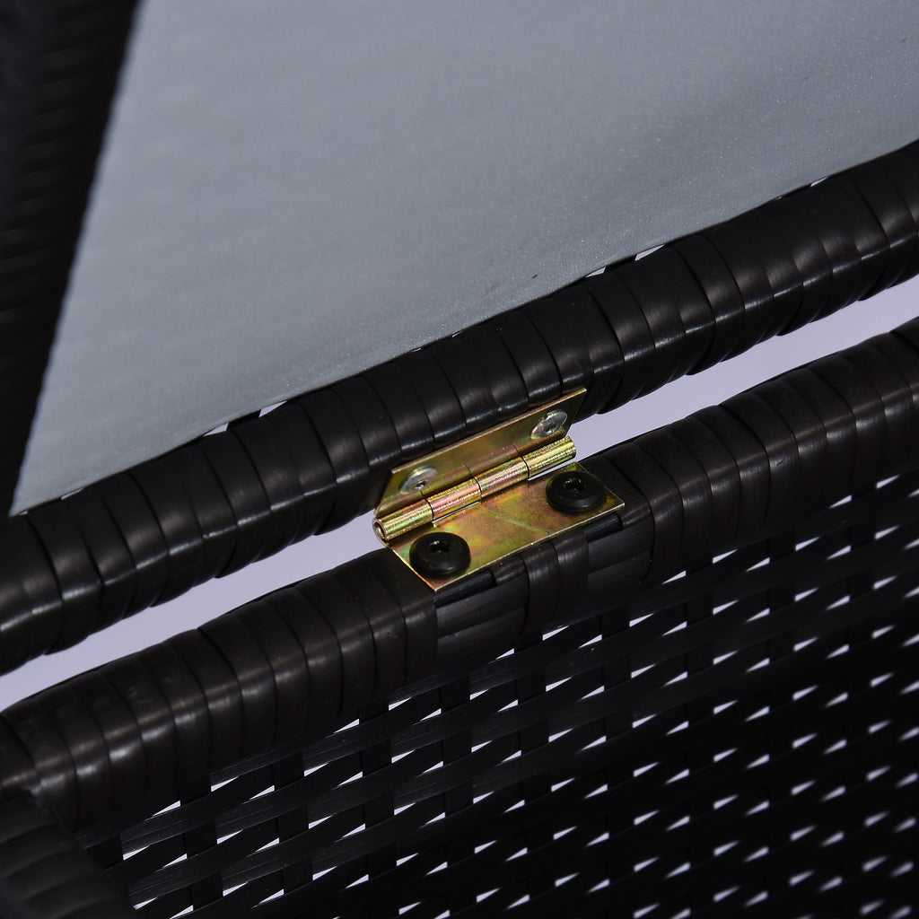 Questo baule in rattan è perfetto per il giardino o il patio e si abbina perfettamente ai tuoi arredi esterni. Ideale per custodire i cuscini dei mobili in rattan o per riporre velocemente ciò che desideri, questo contenitore da giardino è realizzato con una struttura metallica e rivestito in rattan PE. Grazie ai materiali leggeri, spostarlo è estremamente facile. È la soluzione ideale per tutte le tue necessità di spazio!