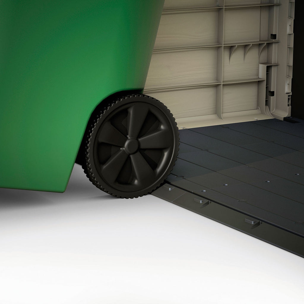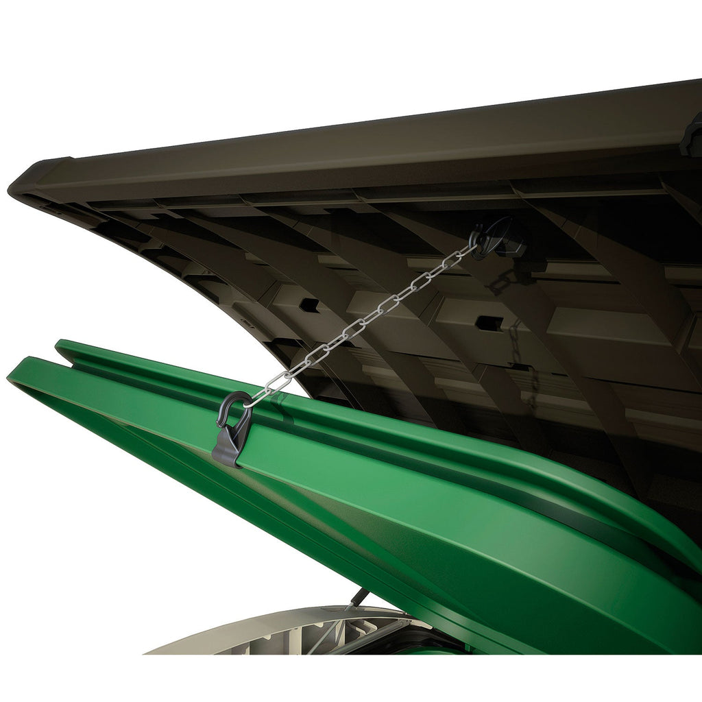 Il porta attrezzi Store-It-Out Ultra offre un accesso agevole grazie all'apertura del coperchio tramite pistoni integrati. La possibilità di organizzare lo spazio interno con mensole regolabili garantisce una soluzione flessibile per l'archiviazione. I fori di ventilazione contribuiscono a mantenere un ambiente fresco all'interno, mentre il pavimento incluso protegge gli attrezzi da umidità e sporco. La capacità di lucchettabilità fornisce una sicurezza aggiuntiva. Con questo porta attrezzi, ottieni non solo un sistema di archiviazione efficiente, ma anche una soluzione versatile e sicura per mantenere il tuo spazio esterno organizzato e protetto.