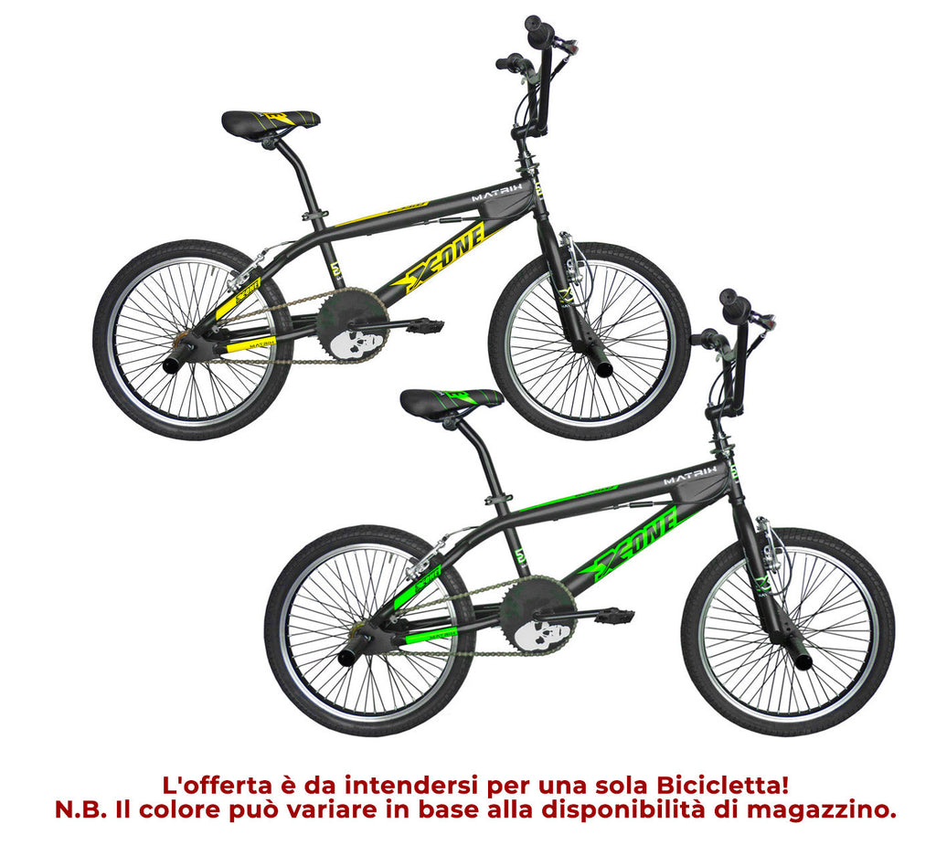 Bicicletta BMX Freestyle 20” Free X-One Nero/Giallo o Nero/Verde