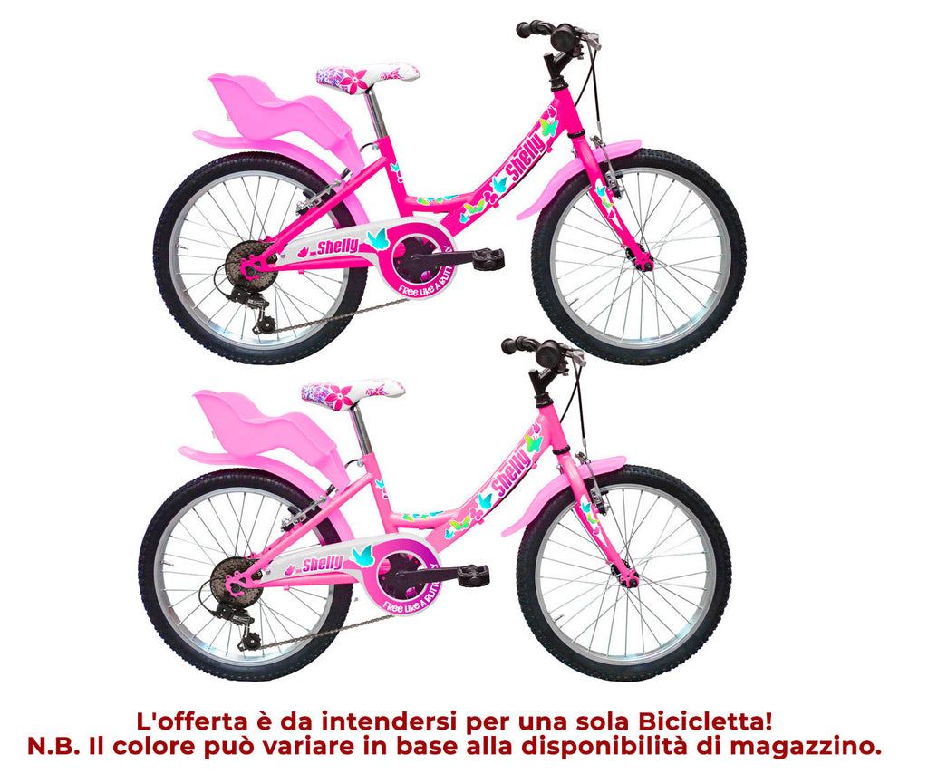 Bicicletta MTB Ragazza 20” 6 Velocità Shelly Fragola o Rosa