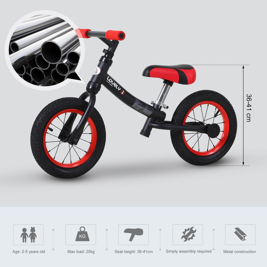 Vélo Pédagogique pour Enfants 10" Sans Pédales Noir et Rouge