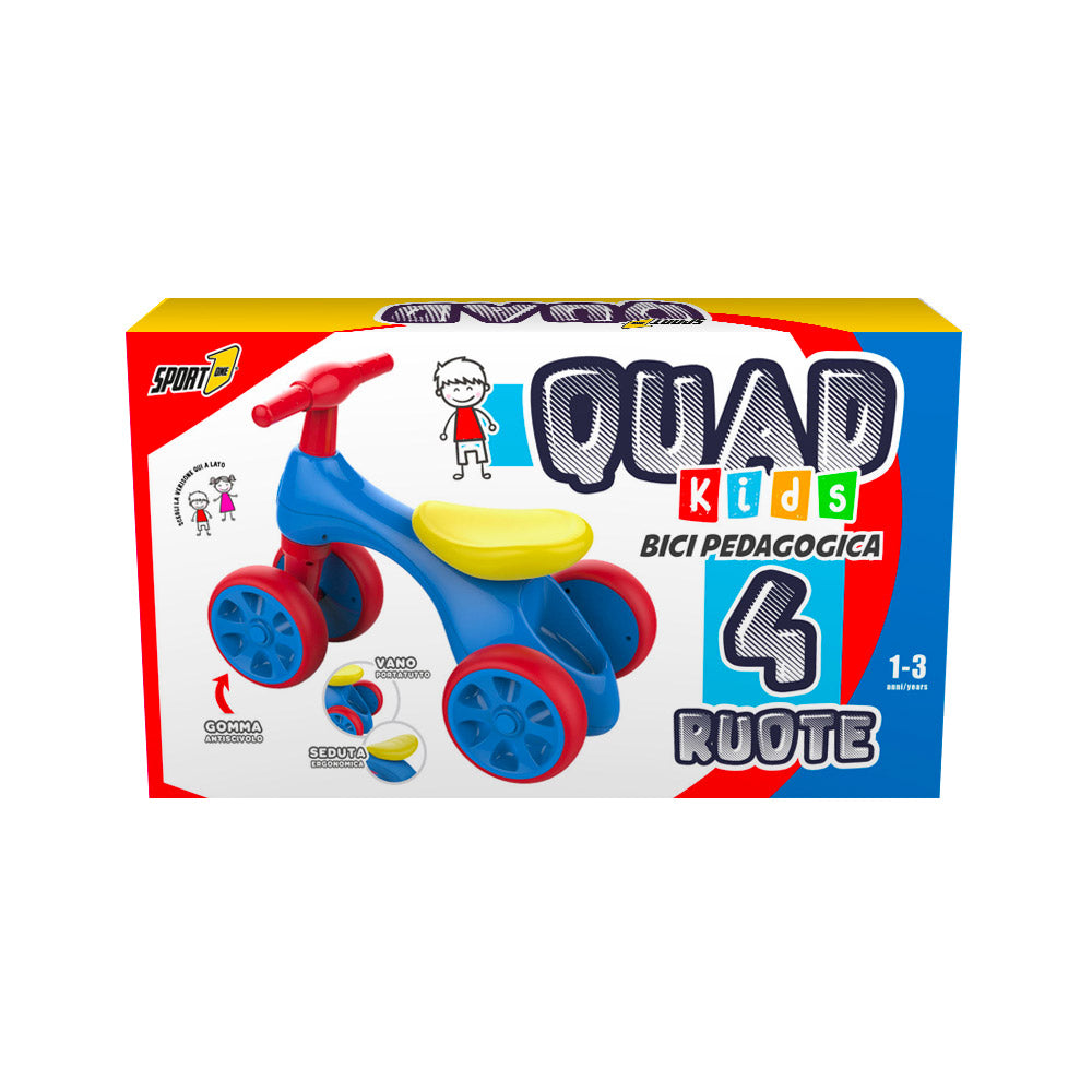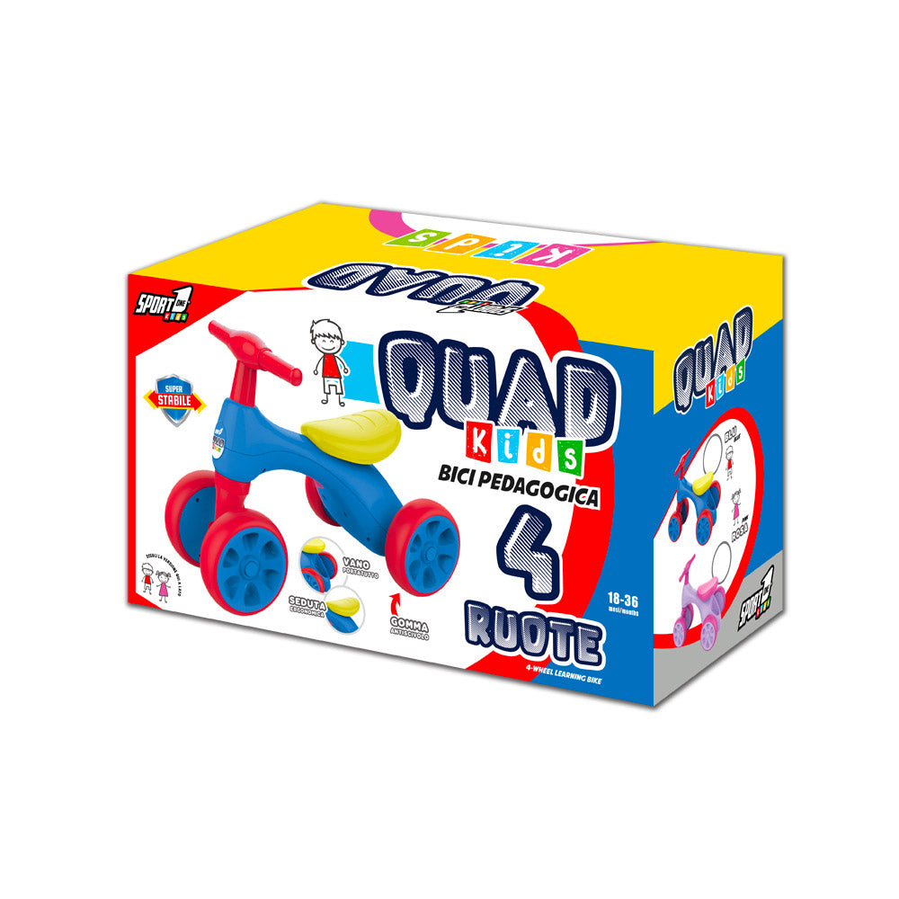 Bicicletta Pedagogica per Bambino 57x34x42 cm 4 Ruote Quad Blu