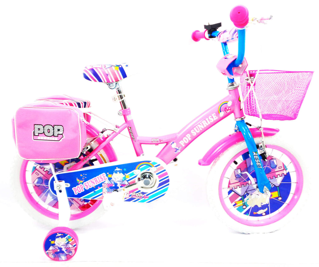 Vélo fille 16" 2 freins avec panier et sacoches roses et blancs