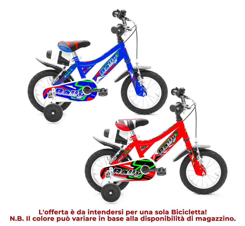 Bicicletta per Bambino 12” 2 Freni Bimbo Rally Blu o Rosso