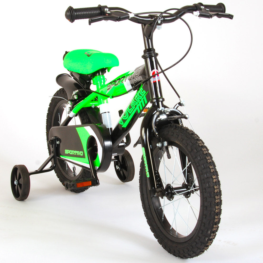 Bicicletta per Bambino 12"" 2 Freni Sportivo Verde Neon e Nero