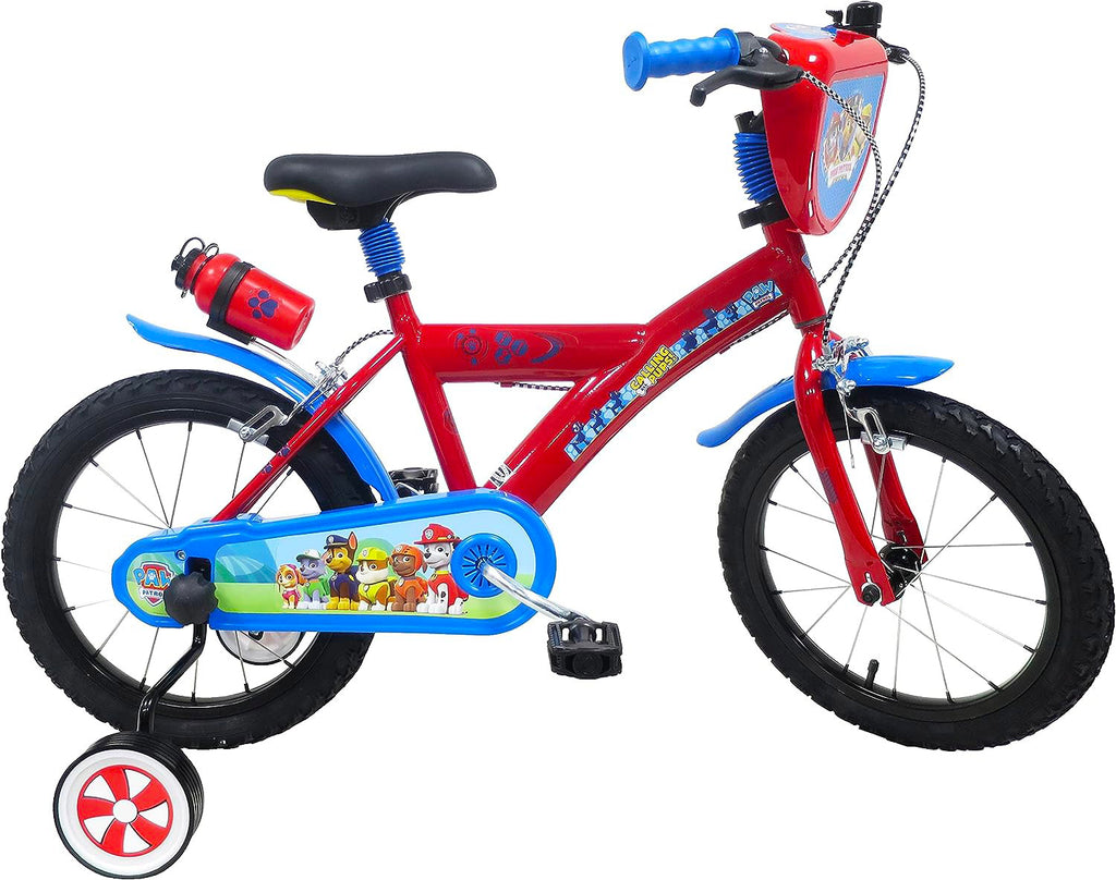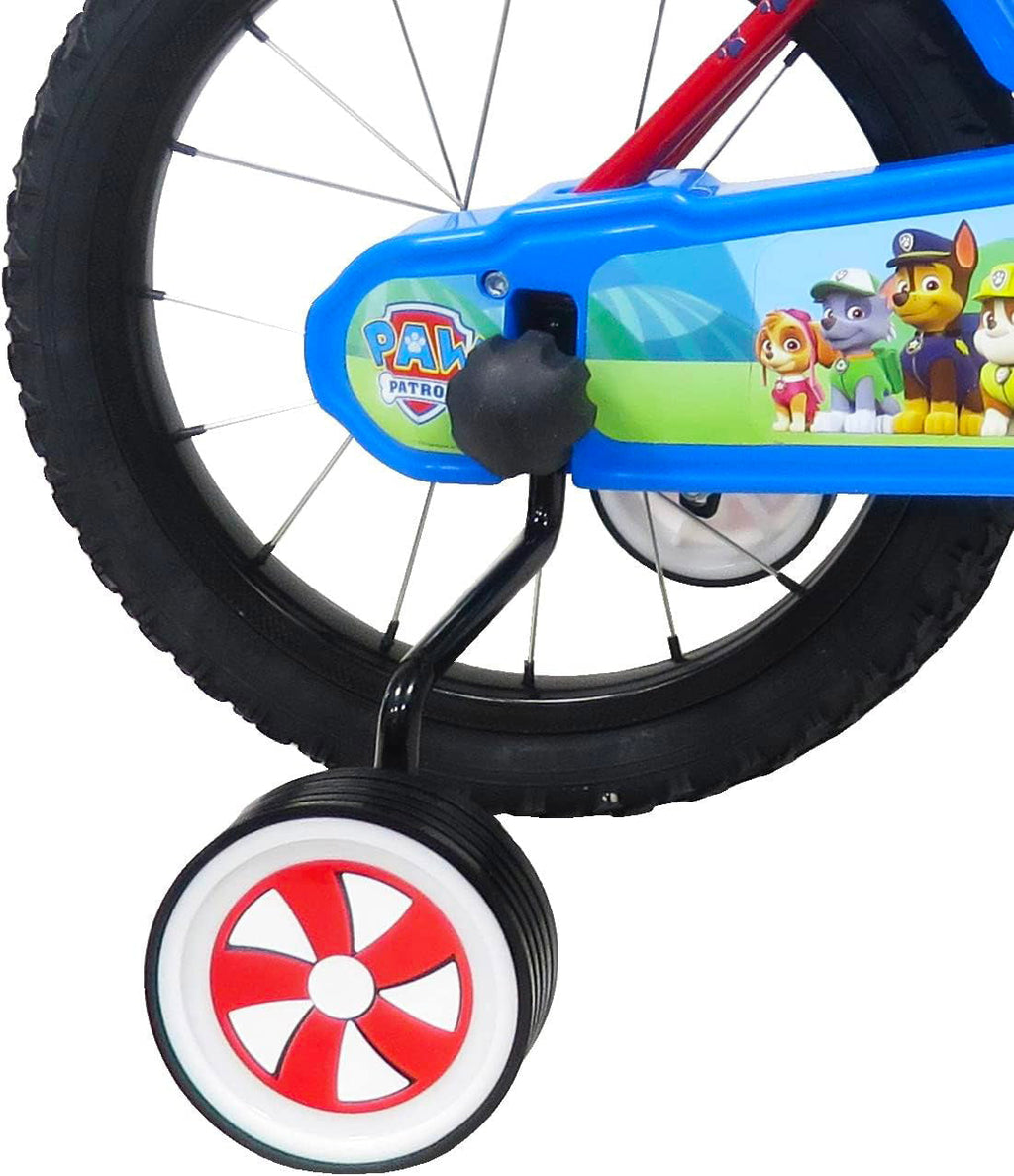 La bicicletta da 14 pollici bambino di Paw Patrol è specificamente studiate per accompagnare i vostri figli nel mondo delle due ruote dai 3 ai 5 anni di età. La bicicletta 14 pollici è stabile e sicura grazie alle rotelle laterali removibili, agli pneumatici tassellati con camera d'aria e sicura grazie di freni anteriori e posteriori di tipo caliper. Ha un telaio in metallo, cerchi in lega di metallo con raggi regolabili, ed èaccessorta con scudo anteriore, borraccia e campanello.