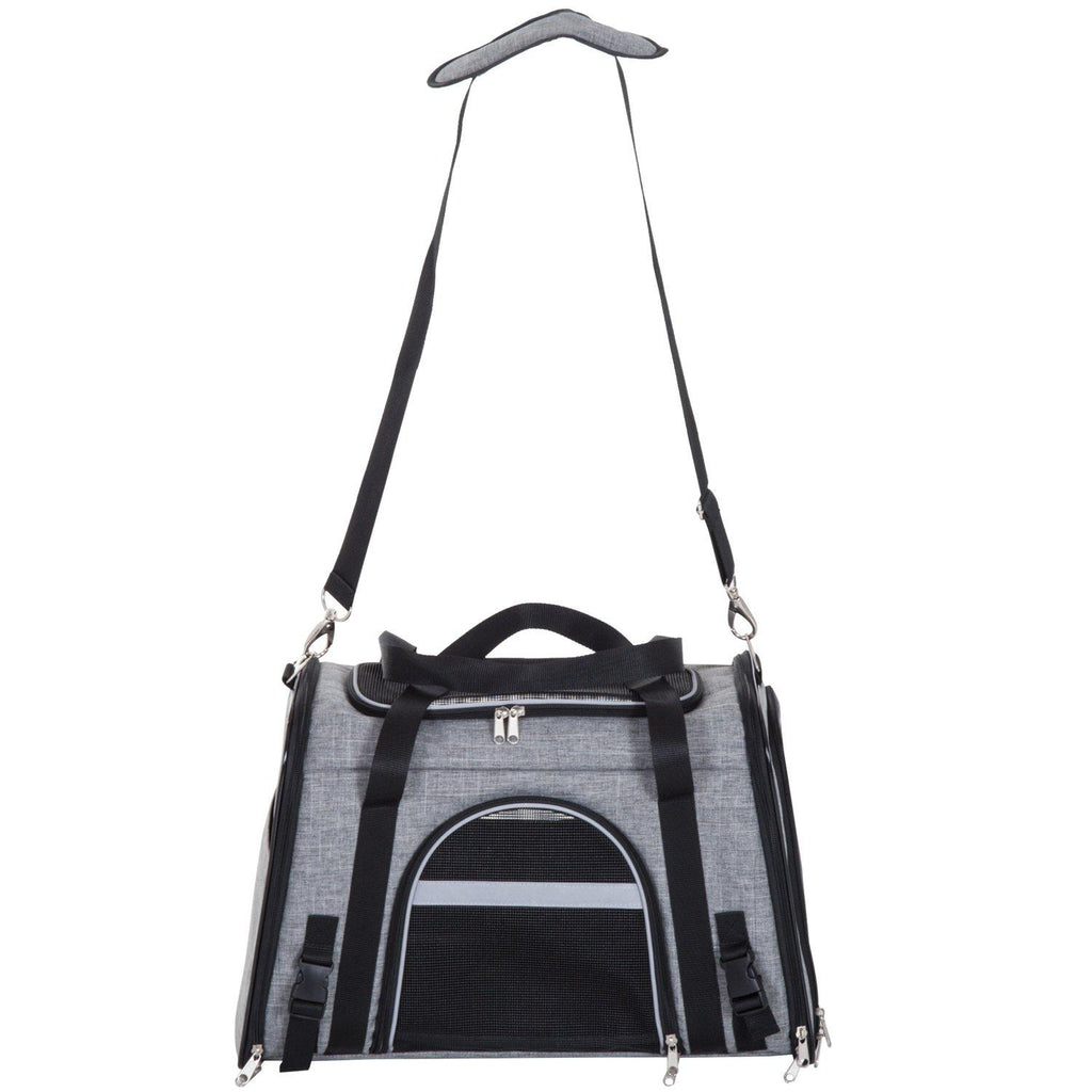 Sac de transport pliable pour chiens chats avec bandoulière en tissu Oxford gris 50x26,5x33 cm