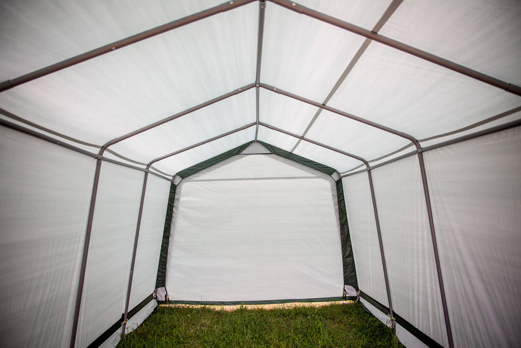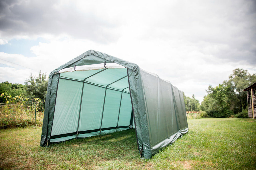 Idéal comme garage et pour réparer les gros outils de jardin, motos, scooters, vélos, bois de chauffage, meubles de jardin. Toile intérieure blanche qui offre une plus grande luminosité, résistante aux agents atmosphériques grâce à sa feuille traitée anti-UV imperméable et indéchirable pour une protection contre les rayons du soleil, durable et efficace.