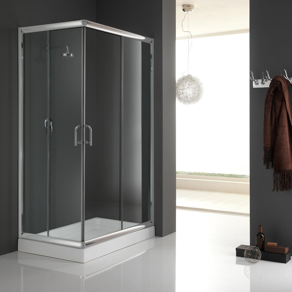 - Cabine de douche d'angle rectangulaire 80x100 CM composée de 2 portes fixes et 2 portes coulissantes