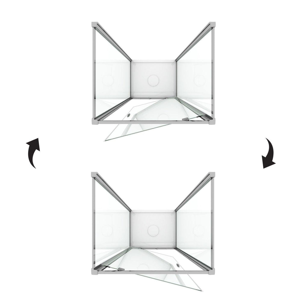 - Cabine de douche à trois côtés composée de 2 parois fixes et 1 porte de douche composée de 1 porte battante