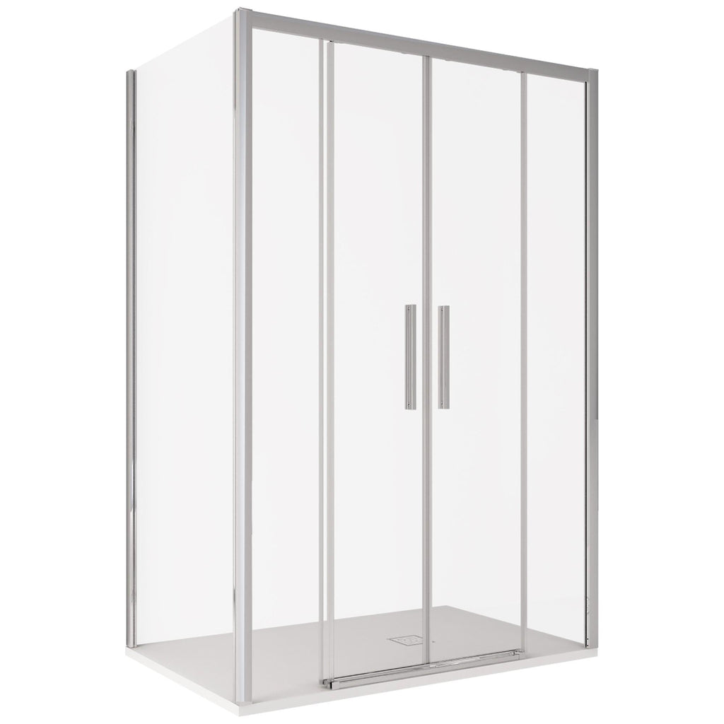 Cabine de douche 2 faces avec entrée frontale coulissante équipée d' une fermeture magnétique pour une parfaite étanchéité à l'eau, cristal de 6 mm avec traitement anti-calcaire qui empêche la formation de calcaire et facilite le nettoyage en permettant l' élimination des impuretés uniquement avec de l'eau chaude. Il vous permet de faire des économies en n'ayant plus à acheter des produits spécifiques. Peut être installé au ras du sol ou sur un receveur de douche . Roues en acier inoxydable et téflon.