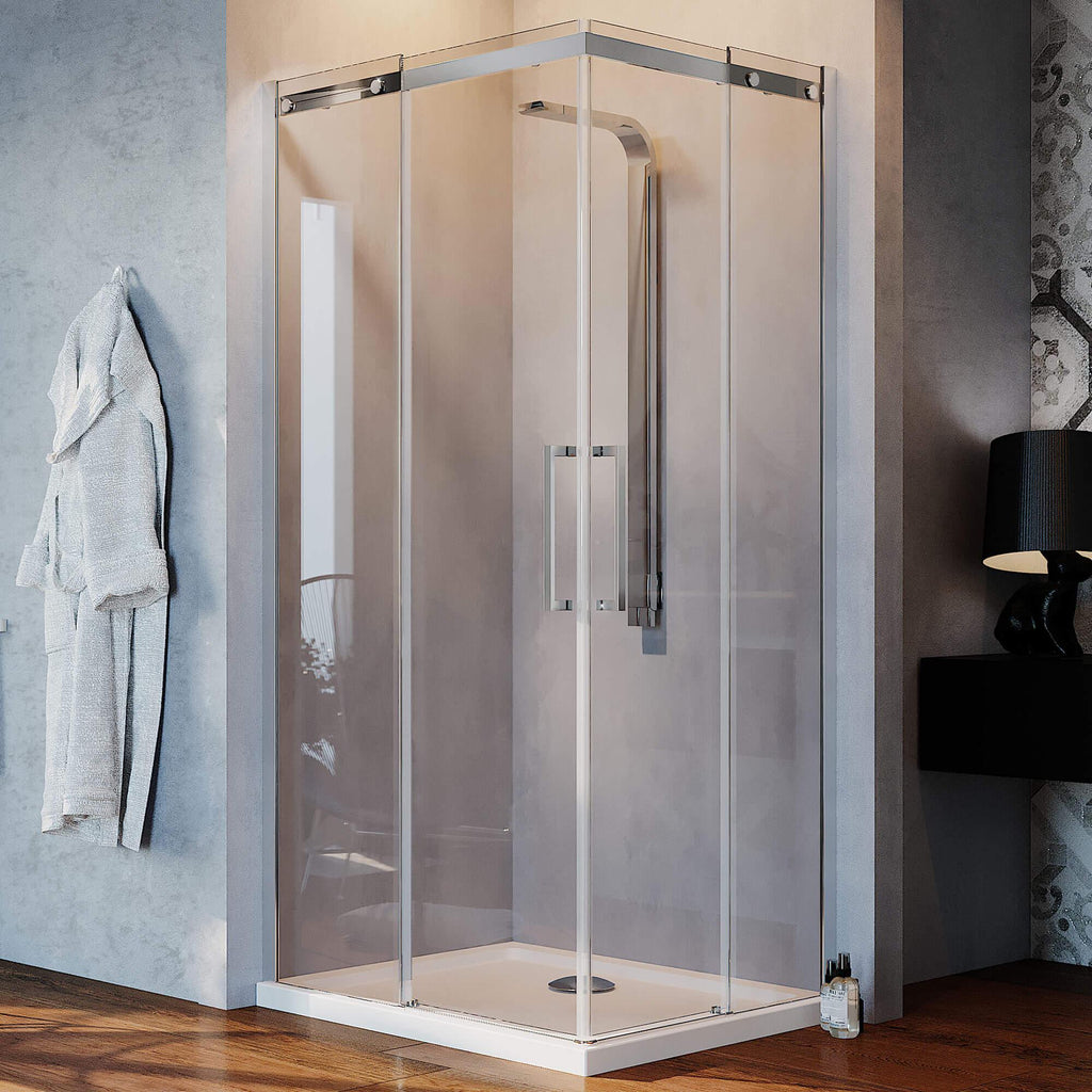 Cabine de Douche d'Angle 2 Portes Coulissantes en Cristal Transparent 8mm H200 Fosterberg Horsens Différentes Tailles