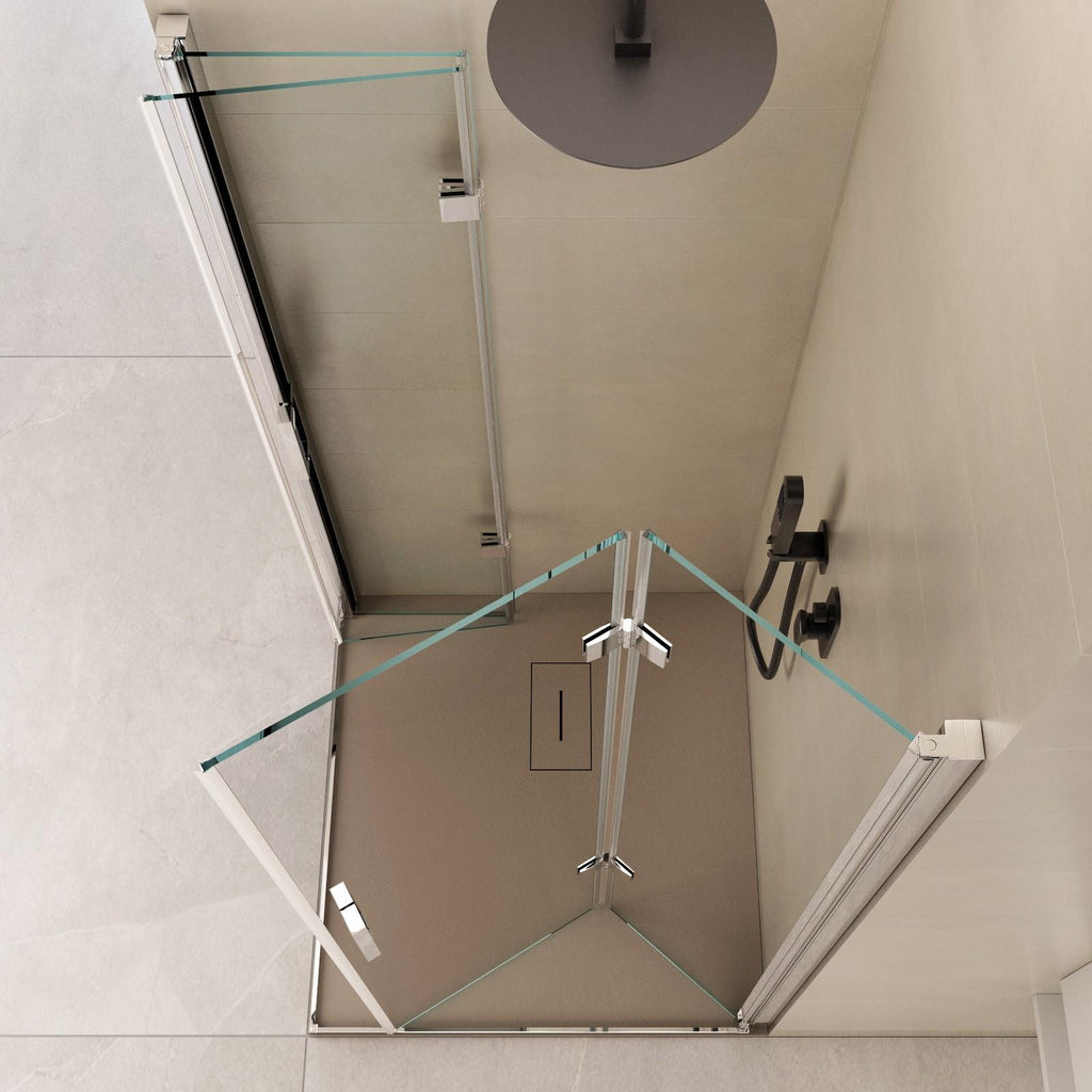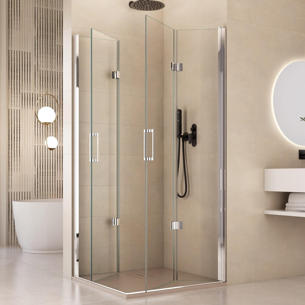 Cabine de douche d'angle 2 portes pliantes coulissantes en cristal transparent 6 mm H195 Bonussi Lena Différentes tailles