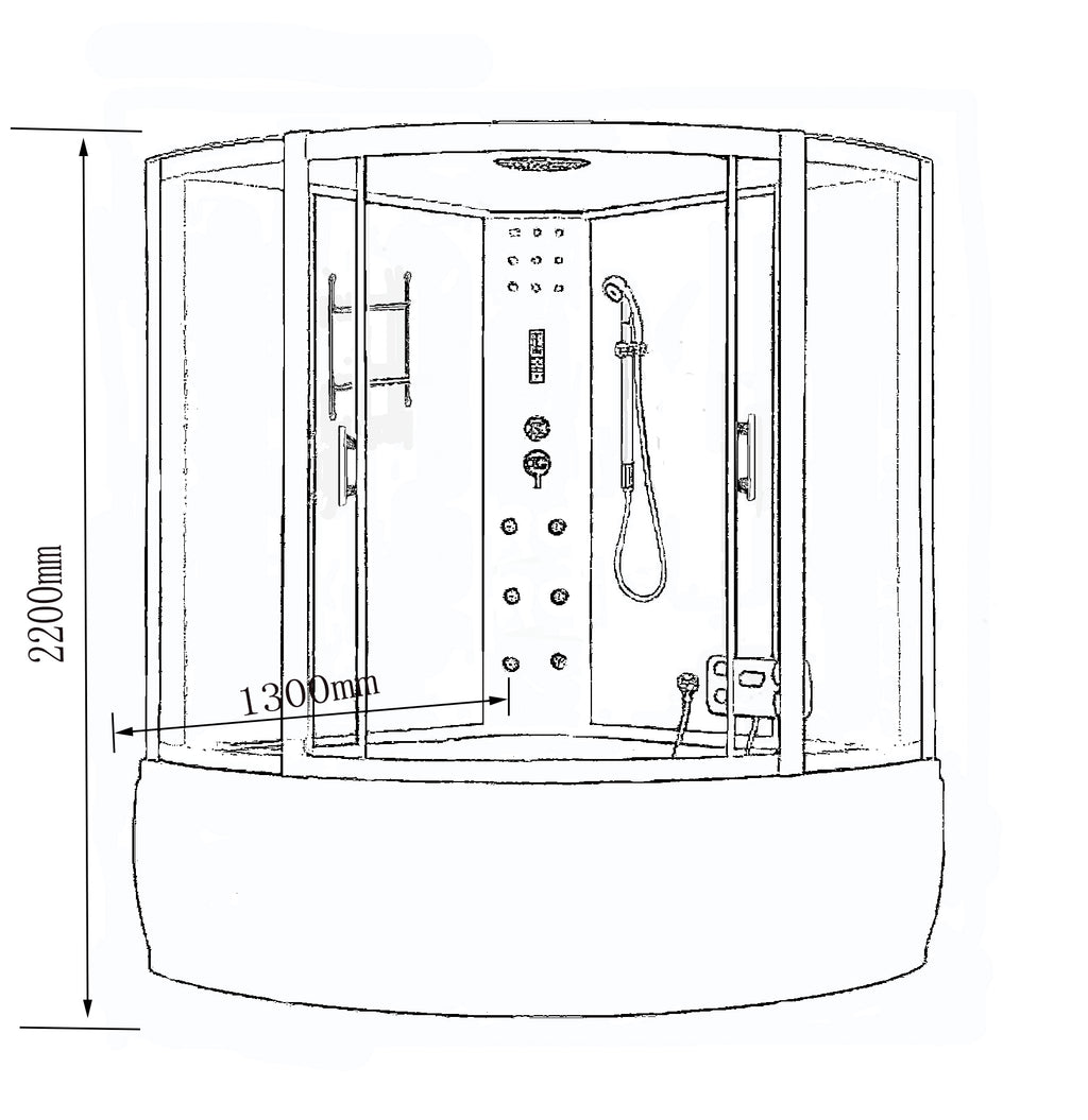- Dimensions de la baignoire : base 130 x 130 xh 220 cm