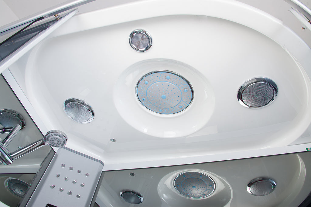 Cabine de douche d'hydromassage 115x90 cm En option complète avec sauna, bain turc et thérapie à l'ozone aux effets relaxants et revigorants, fabriquée uniquement avec des matériaux certifiés et garantis de haute qualité et assemblée avec soin dans les moindres détails.La baignoire de douche est en résine ABS antidérapante résistante, verre trempé fumé ultra-résistant de 5 mm anti-casse et anti-fragmentation, profilés de support en aluminium, éclairage intérieur, extracteur de vapeur, radio, récepteur téléphonique, pomme de douche centrale, rail coulissant, 6 jets d'hydromassage pour les épaules et le dos, réglage des jets, porte-bouteille, massage des pieds, chromothérapie, affichage numérique à écran tactile et aromathérapie inclus.