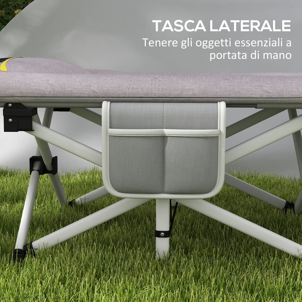 Brandina per Campeggio con Poggiatesta e Tasca 200x65x42 cm in Acciaio e tessuto Oxford Grigio