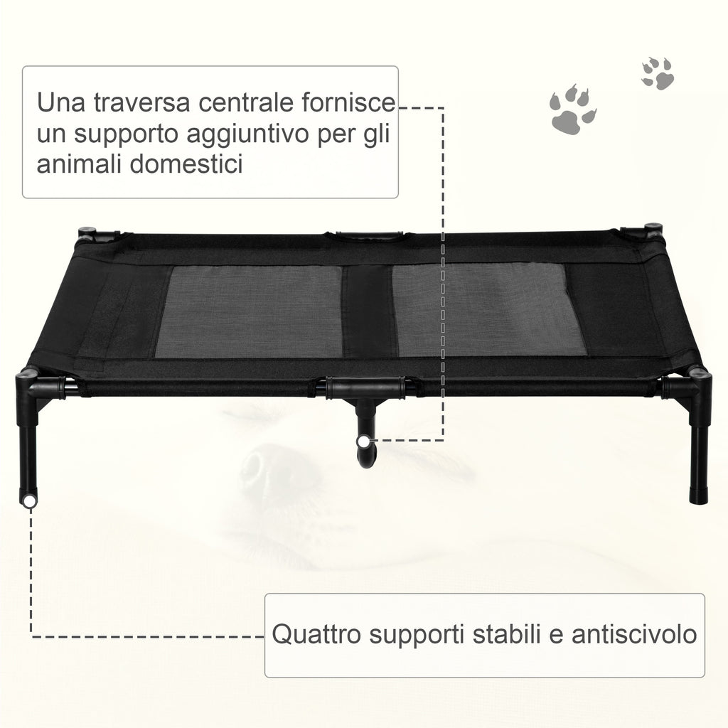 Regala ai tuoi animali domestici il miglior sonno possibile con il letto per cani rialzato . Questa cuccia rialzata è adatta a far dormire i tuoi pelosi sia in casa che fuori. Il telaio in acciaio, leggero ma robusto, con una rete traspirante facile da pulire, mantiene gli animali domestici rilassati e al sicuro. Questo lettino per animali è in grado di sostenere fino a 50kg di peso, mantenendoli freschi grazie a un'adeguata ventilazione.