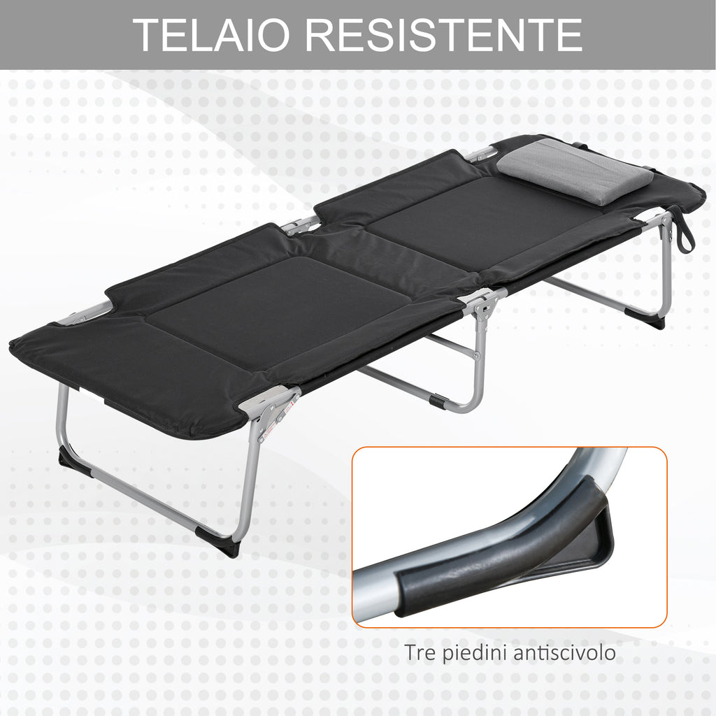 Lit pliant de camping 183x66x33 cm en métal et tissu Oxford matelassé noir