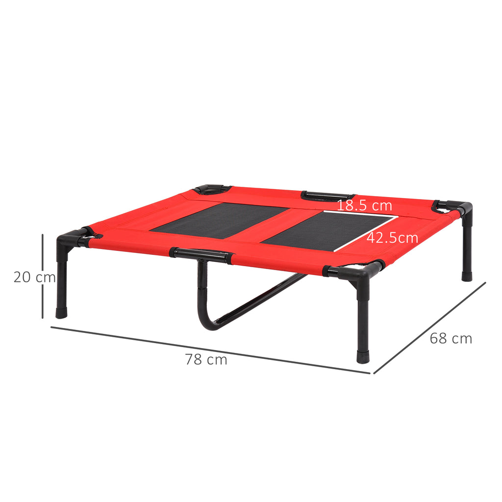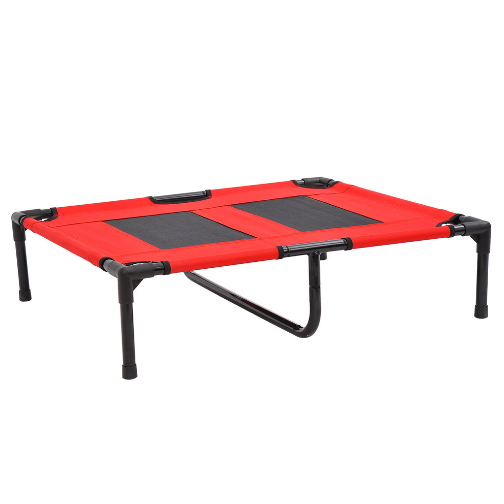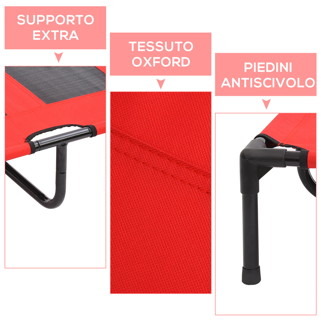 Lit Portable pour Chiens 78x68x20 cm Jusqu'à 18Kg en Métal et Tissu Oxford Rouge