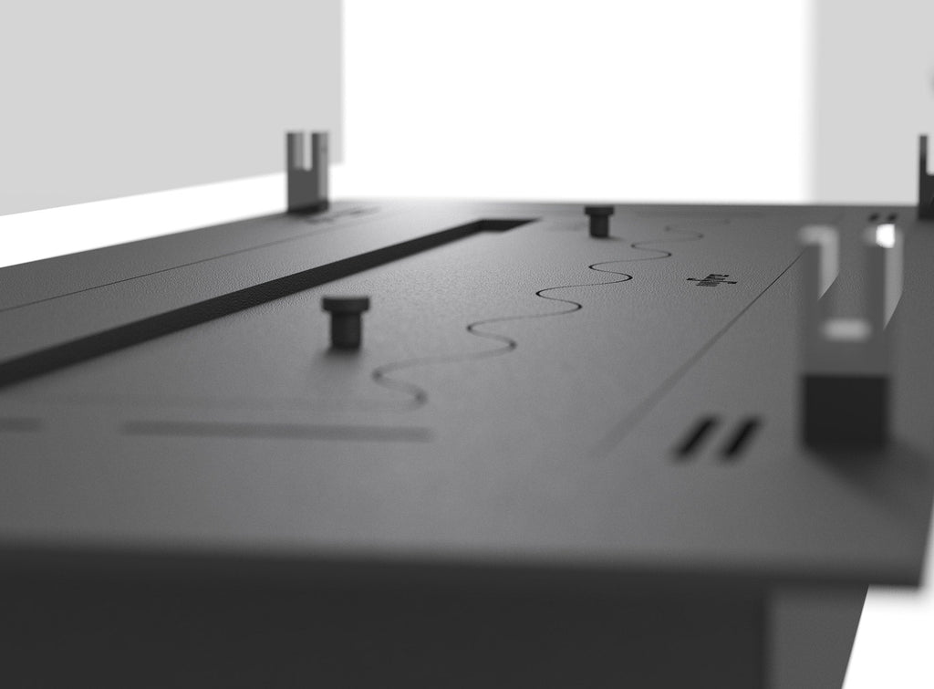 L'inserto in fibra ceramica insieme alla rete aumenta la sicurezza, oltre a prolungare e ottimizzare il processo di combustione. La barra scorrevole consente di regolare la dimensione della fiamma e spegnere il camino in sicurezza, e la forma dell'onda crea un ulteriore effetto 3D.
