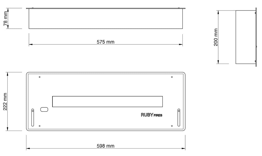 Brûleur Bio Ethanol pour Cheminées 2L 59,8x7,8x22,2cm Ruby Fires Brûleur Céramique 5820LB Noir