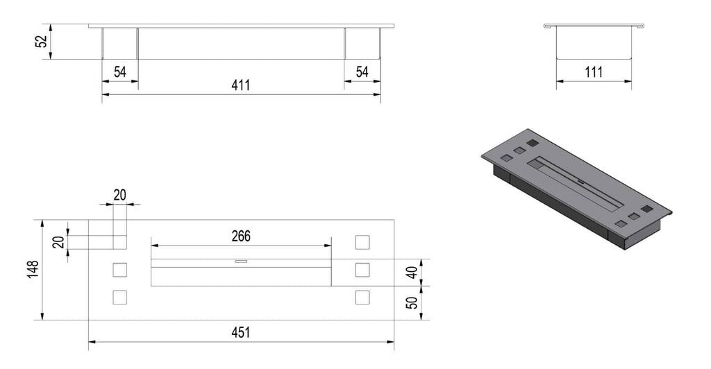 Caractéristiques Techniques Brûleur Bioéthanol pour Cheminées avec Aromathérapie 1.2L 5x41x11cm Flig Aromatherapy Large