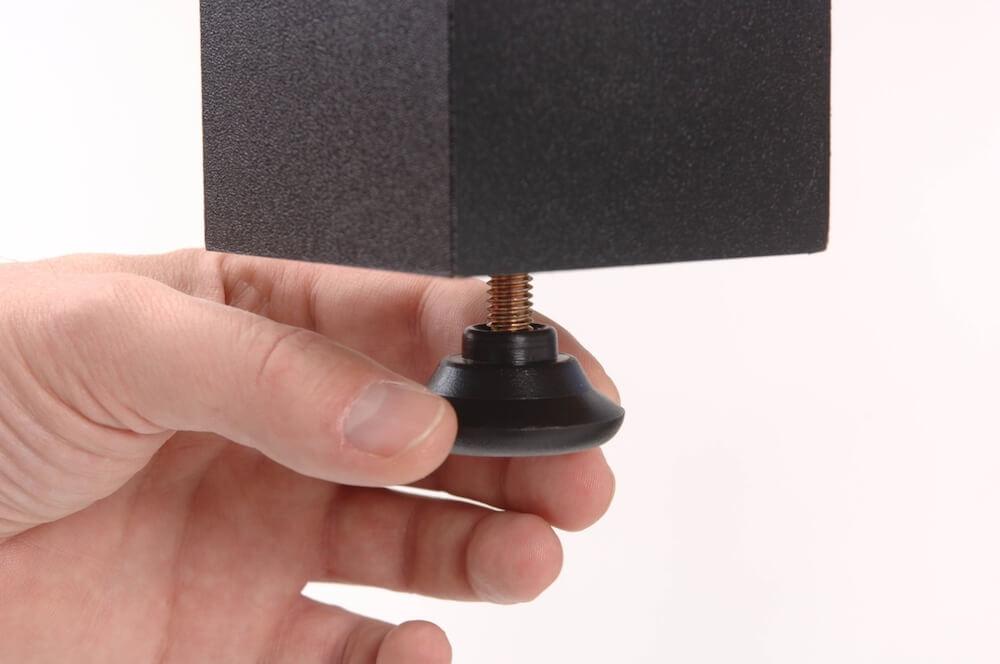 Les pieds carrés robustes en MDF (7,5 x 7,5 cm) avec revêtement en mélaminé noir rendent la table stable même lorsque vous jouez. Pieds réglables standard pour un nivellement parfait de la surface de jeu même sur des sols inégaux.