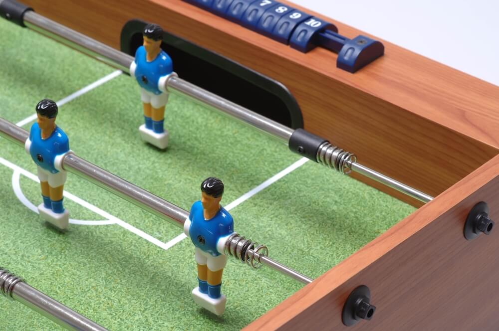 Marquer des buts est plus facile et plus ludique grâce au gardien qui tourne sur lui-même et à la configuration particulière des petits hommes, disposés selon le schéma : 1 (gardien), 3 (défenseurs), 4 (milieux), 3 (attaquants) . Joueurs de couleur : rouge et bleu.