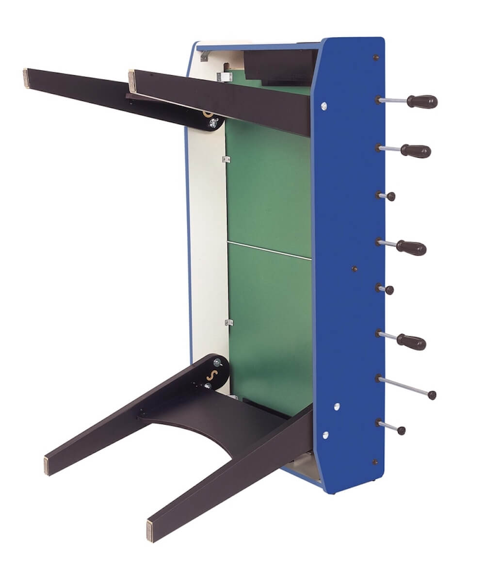 Des patins en caoutchouc spécifiques permettent un appui plus facile du box au sol lorsque le baby-foot est en position verticale.