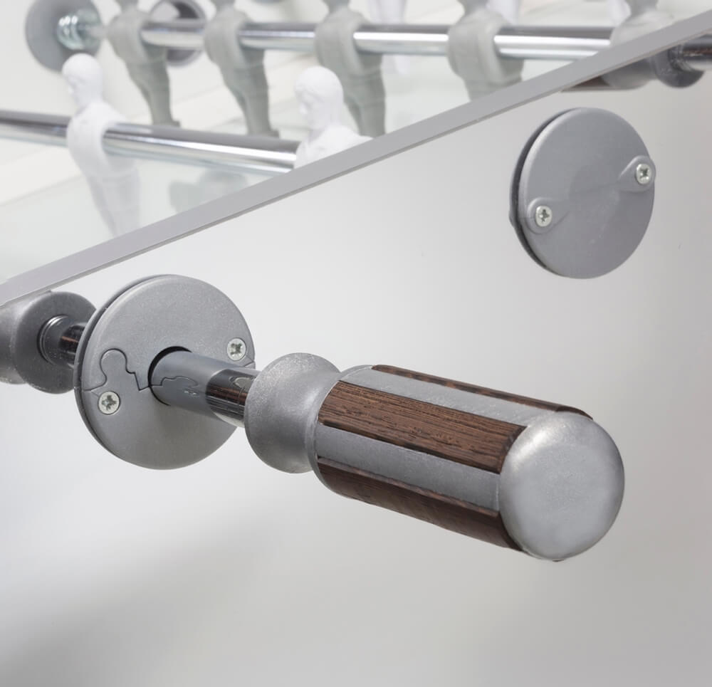 Baby-foot au design exclusif, capable de se démarquer dans n'importe quel environnement, tout en s'intégrant parfaitement grâce à ses surfaces qui reflètent les objets environnants.