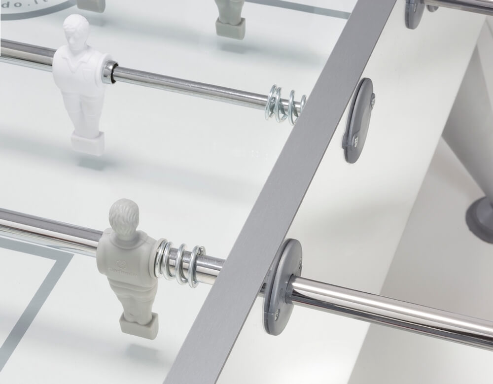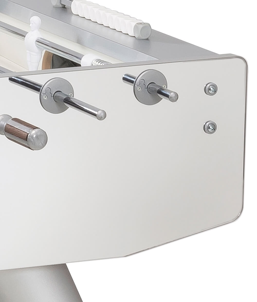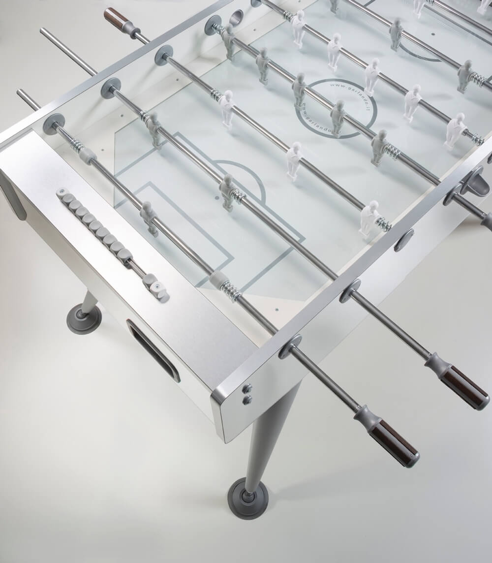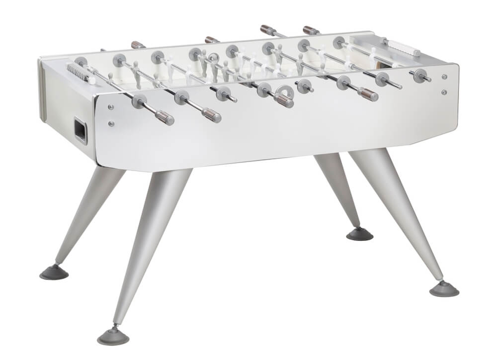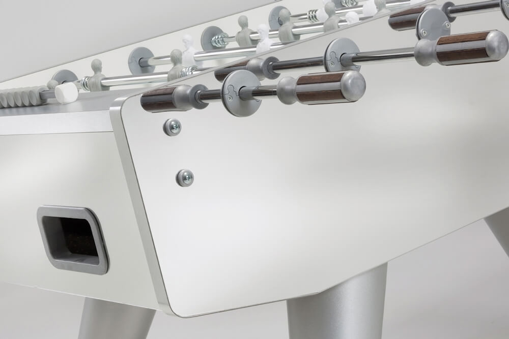 Baby-foot au design exclusif, capable de se démarquer dans n'importe quel environnement, tout en s'intégrant parfaitement grâce à ses surfaces qui reflètent les objets environnants.