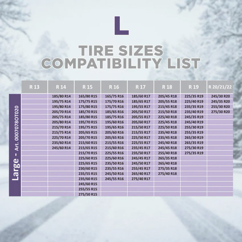 Le tissu tridimensionnel 3D est très résistant et imperméable, permet une excellente traction sur route, facilite la conduite sur glace et neige et ne produit pas de vibrations comme les chaînes à neige classiques. Le tissu laisse également les bras de roue libres, permettant un freinage et une direction sans aucune difficulté. Elles sont compatibles avec les dispositifs ABS et ESP et conviennent également aux véhicules avec un espace limité entre le passage de roue et le pneu où la chaîne à neige ne peut pas être utilisée. Lavables et réutilisables, elles sont l'accessoire parfait pour ceux qui souhaitent une chaussette à neige simple et facile à enfiler.