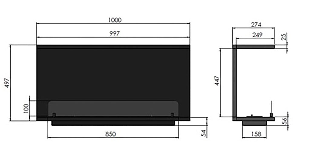 Caractéristiques Techniques Cheminée Bioéthanol Encastrable 100x50x27,5 cm Inside C 1000 V2 Noir avec Vitre