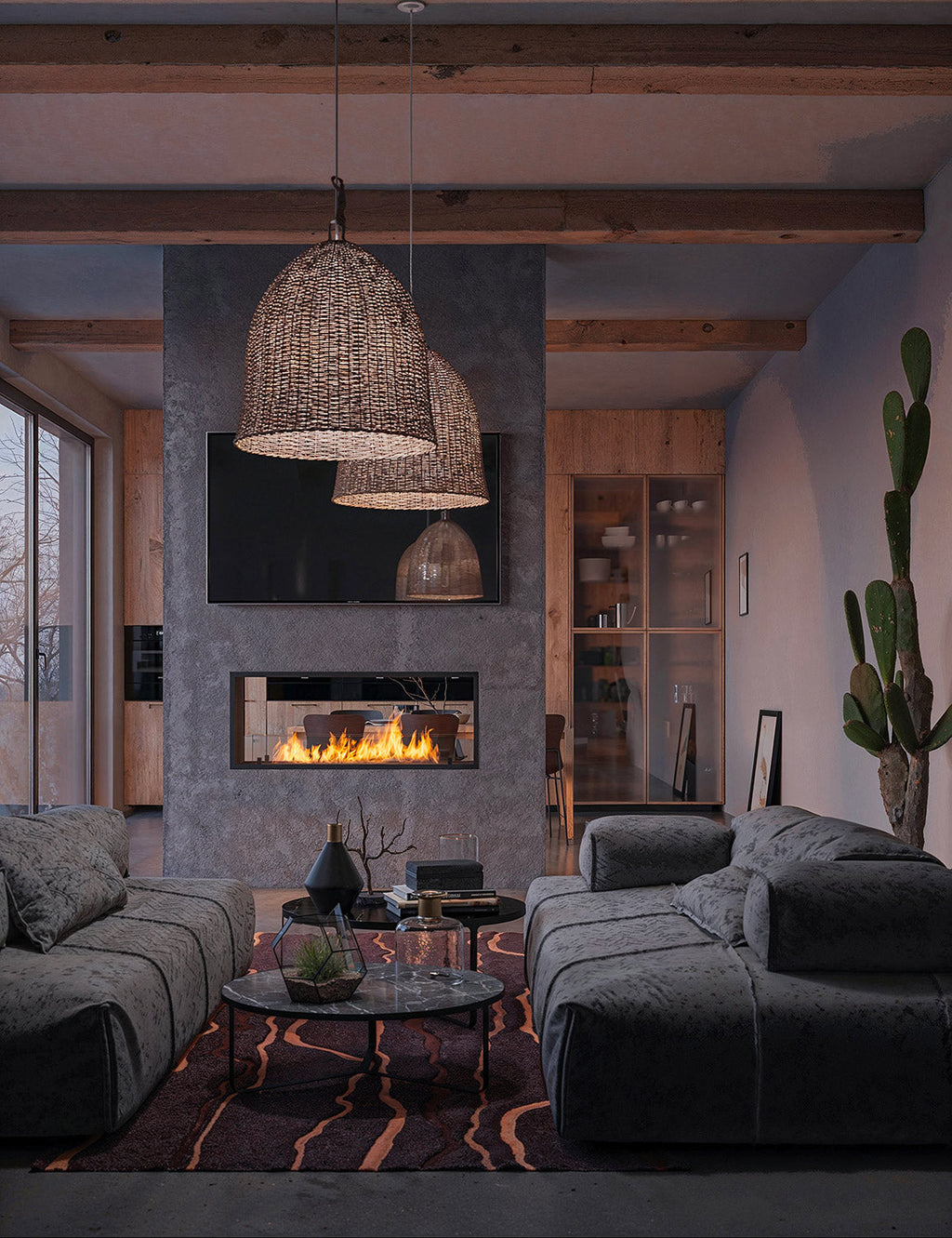 Il biocamino 2 SIDE nella versione SLIM è un elemento di interior design impressionante ed espressivo, e la loro forma verticale e le strette cornici nere conferiscono loro eleganza e un carattere moderno. La natura bifacciale consente un utilizzo funzionale in due stanze adiacenti, creando un'atmosfera accogliente e allo stesso tempo essendo una soluzione pratica per dividere lo spazio, creando un elemento decorativo di grande effetto che dona carattere all'intero interno.