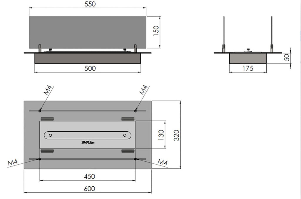 Caractéristiques Techniques Cheminée Bioéthanol Encastrable 60x32x6 cm Insert 600 en Inox