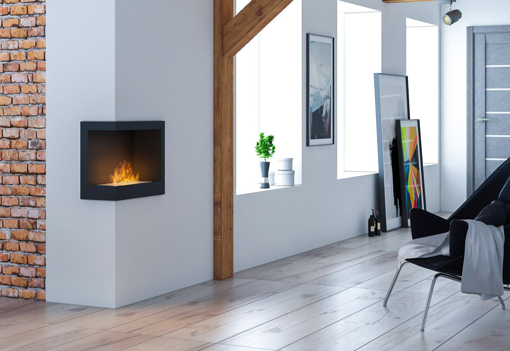 Cheminée au Bioéthanol encastrable 60x45 cm Coin 600 Gauche Gauche Noir