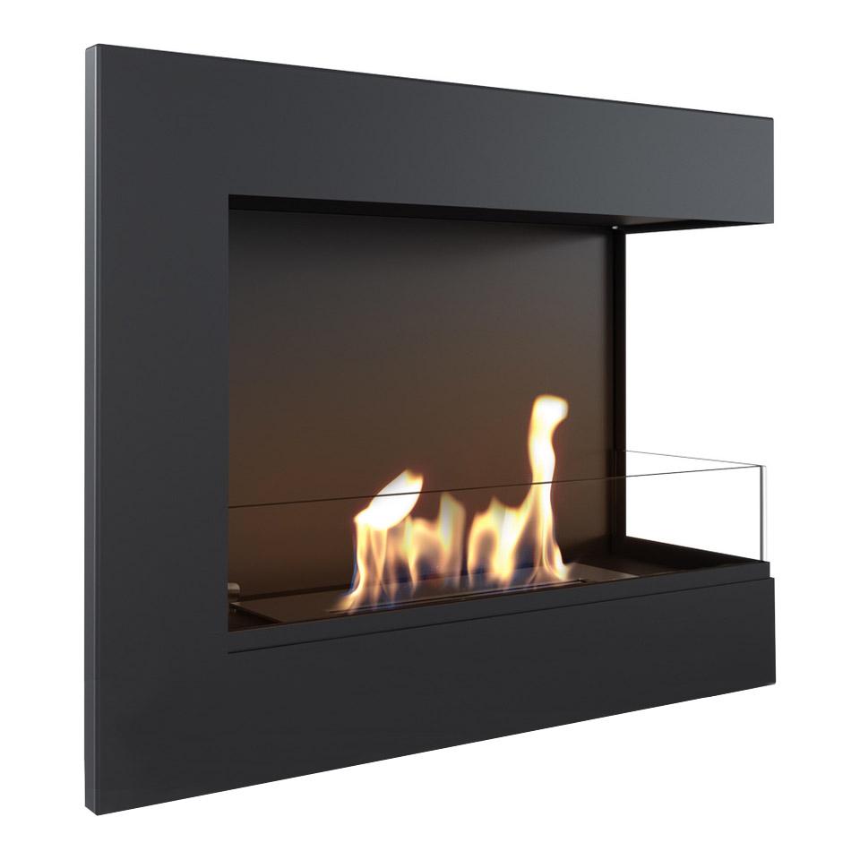 Cheminée Bioéthanol Encastrable 60x48x28cm Flig Tampa Noir avec et sans Vitre Coin Droit