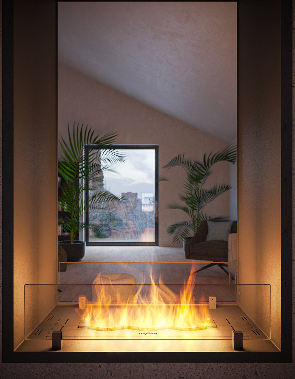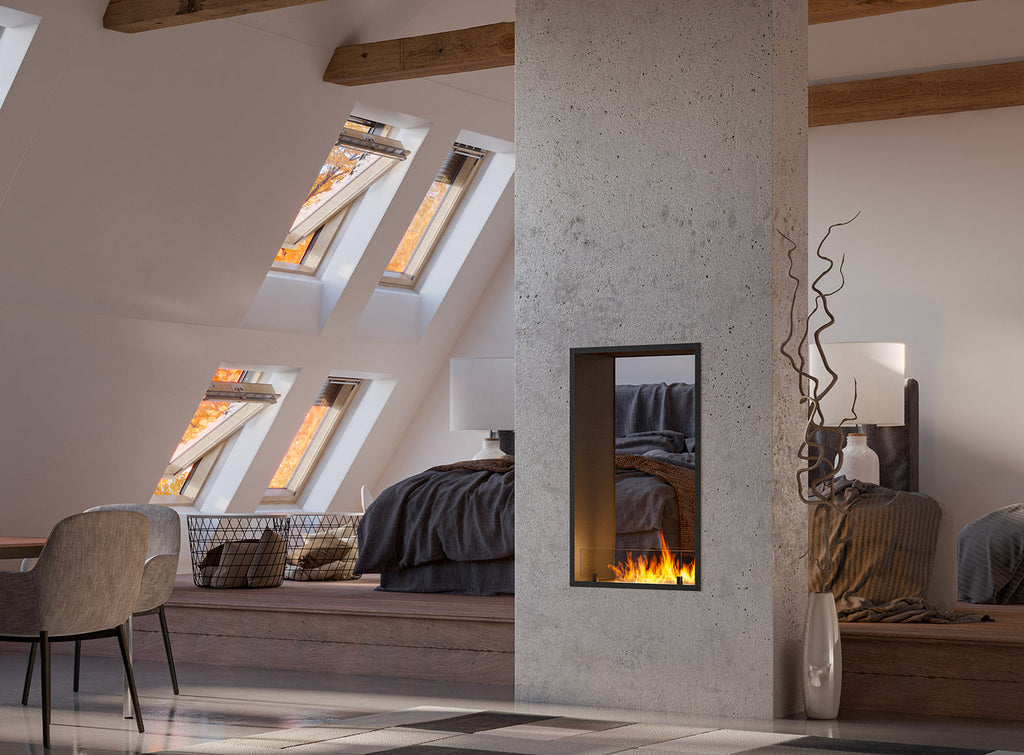 Il biocamino 2 SIDE nella versione SLIM è un elemento di interior design impressionante ed espressivo, e la loro forma verticale e le strette cornici nere conferiscono loro eleganza e un carattere moderno. La natura bifacciale consente un utilizzo funzionale in due stanze adiacenti, creando un'atmosfera accogliente e allo stesso tempo essendo una soluzione pratica per dividere lo spazio, creando un elemento decorativo di grande effetto che dona carattere all'intero interno.