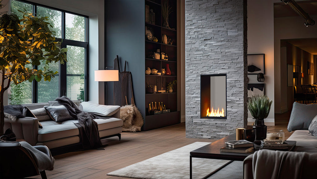 Camino a Bioetanolo da Incasso 63,5x113,5x35 cm Bifacciale 2 Side 1000 Slim Verticale Nero con Vetro